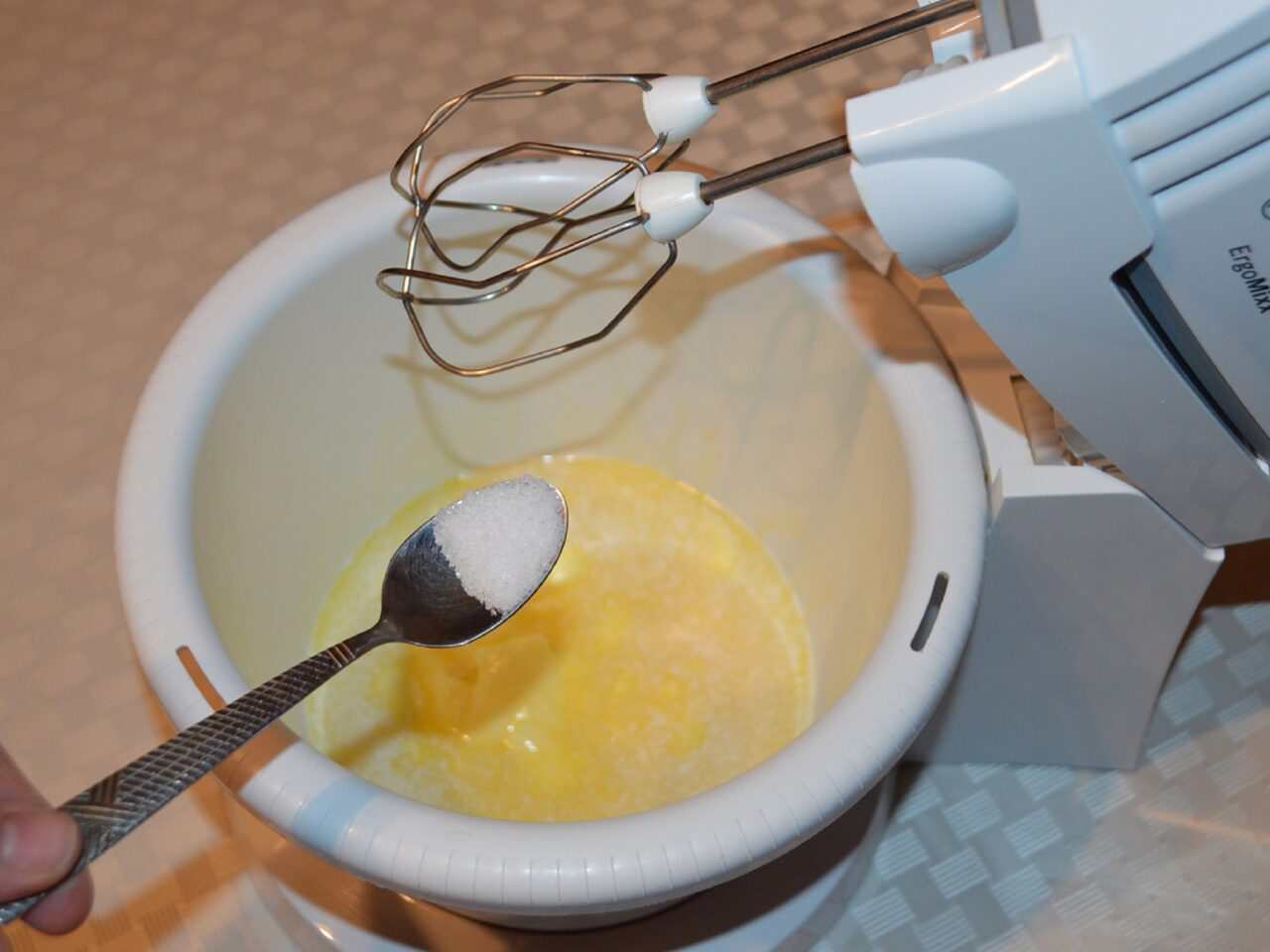 - Intr-un bol adaugati untul topit in microunda, sau intr-o cratita, apoi adaugati jumatate de lingurita de sare.