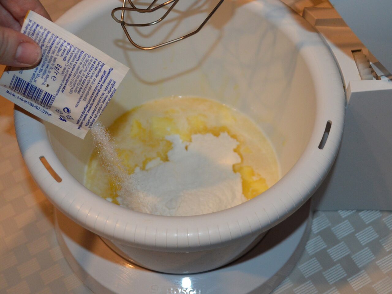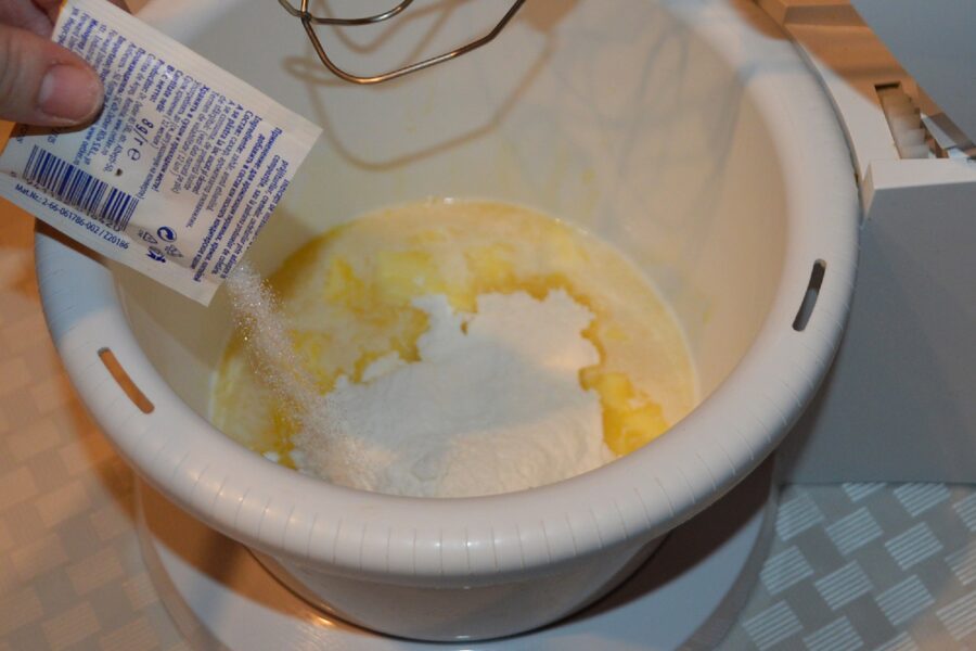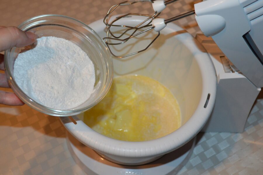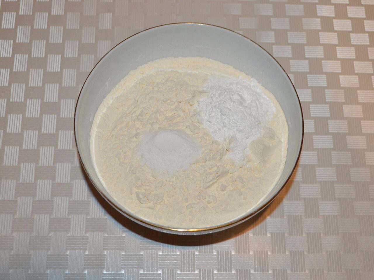- Amestecati intr-un recipient aparte faina cu praful de copt si bicarbonatul de sodiu.