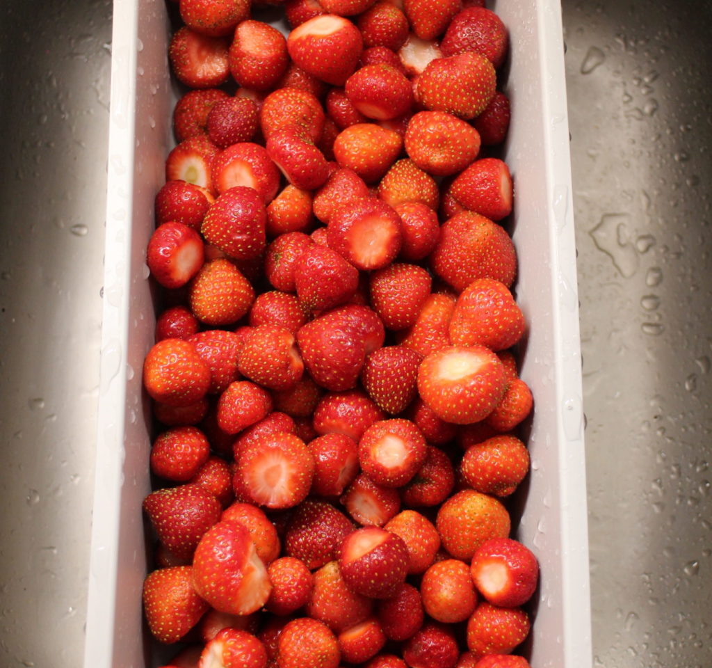 - Dacă folosiți capsuni mai mari, tăiați-le în 2 sau 4 bucăți. Boabele mici nu trebuie tăiate.