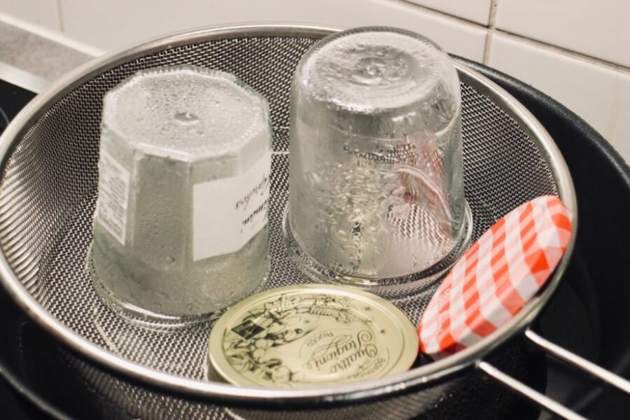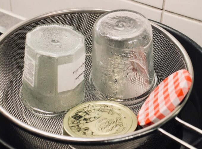 - În timp ce gemul fierbe, sterilizați borcanele în mod obișnuit.
