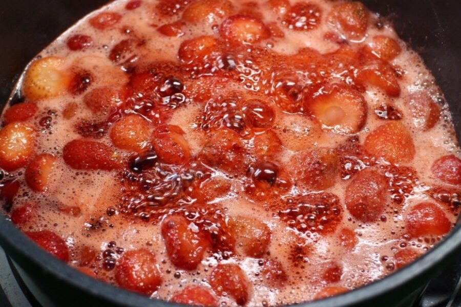 - Nu folosiți vase de gătit din fontă pentru a găti gem de căpșuni. Fierul turnat va reacționa cu acidul din fructe, ducând la formarea unor compuși care dau gemului o culoare neagră.