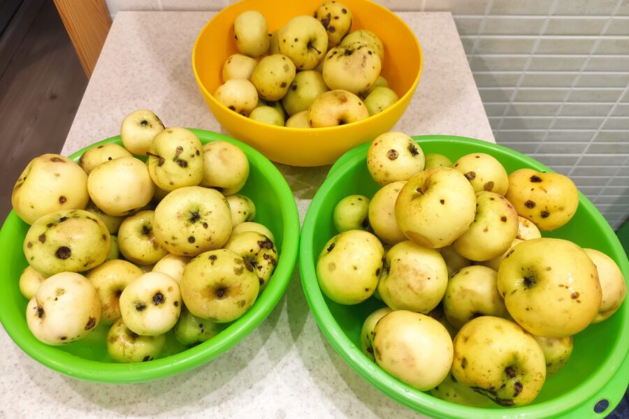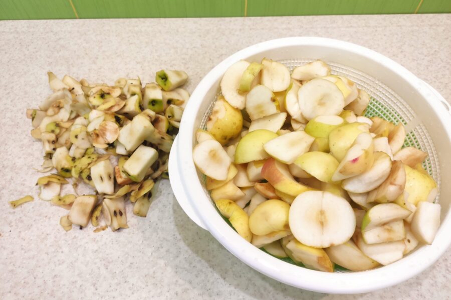 - Se înmoaie merele și se spală bine.