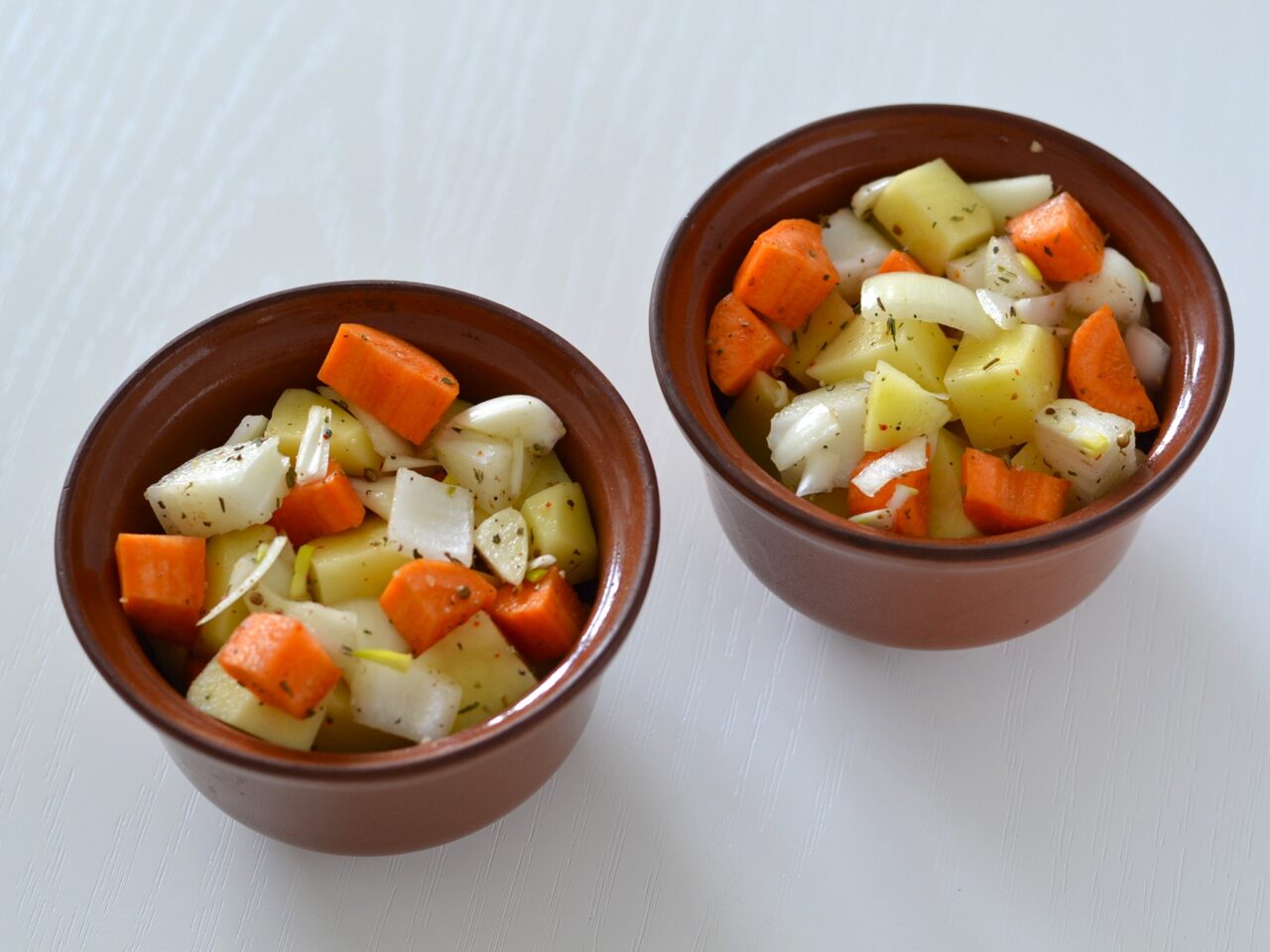 Ghiveci cu curcan si legume este o reteta care aduce confort si nutrienti intr-o singura farfurie. Bucatile fragede de curcan se asociaza perfect cu cartofii tineri, morcovii si legumele de sezon, toate gatite intr-un ghiveci de lut pentru aroma rustica. Usturoiul si ierburile uscate adauga savoare, iar coacerea acoperita in cuptor pastreaza suculenta. Pregatirea nu este complicata si rezultatul iti aduce satisfactie: un fel principal nutritiv, echilibrat si gustos.