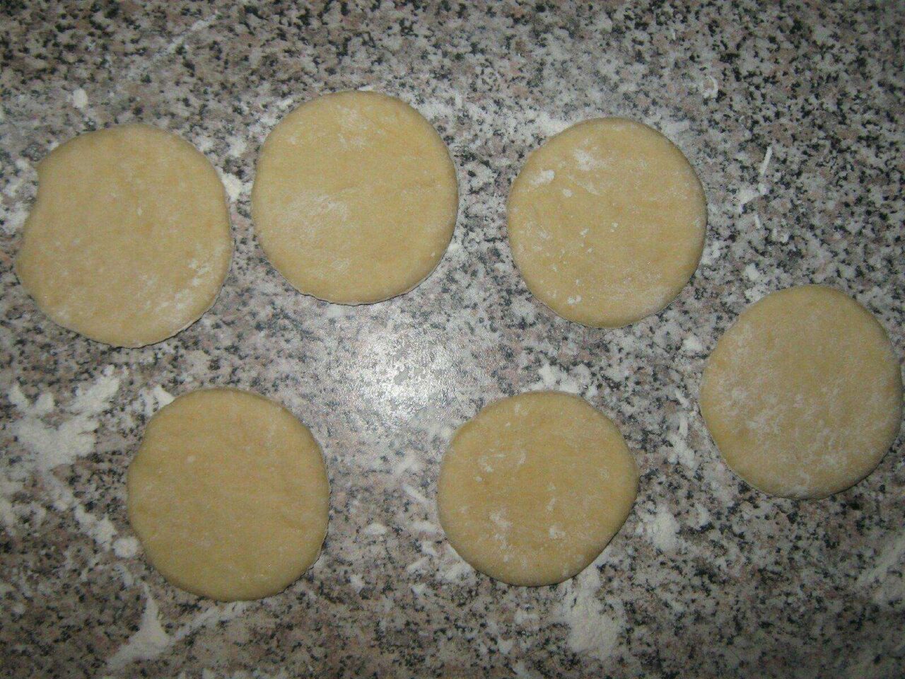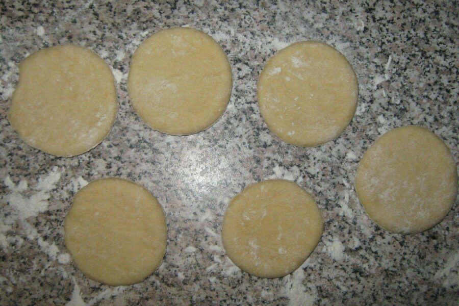 - Împărțiți aluatul în două părți și întindeți-le. Tăiați cercuri. Pune-le deoparte timp de 30 de minute pentru a le lăsa să crească.