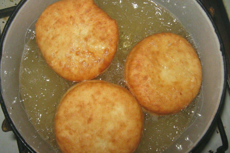 - Prăjiți cercurile în ulei de floarea soarelui pe fiecare parte timp de 2 minute.