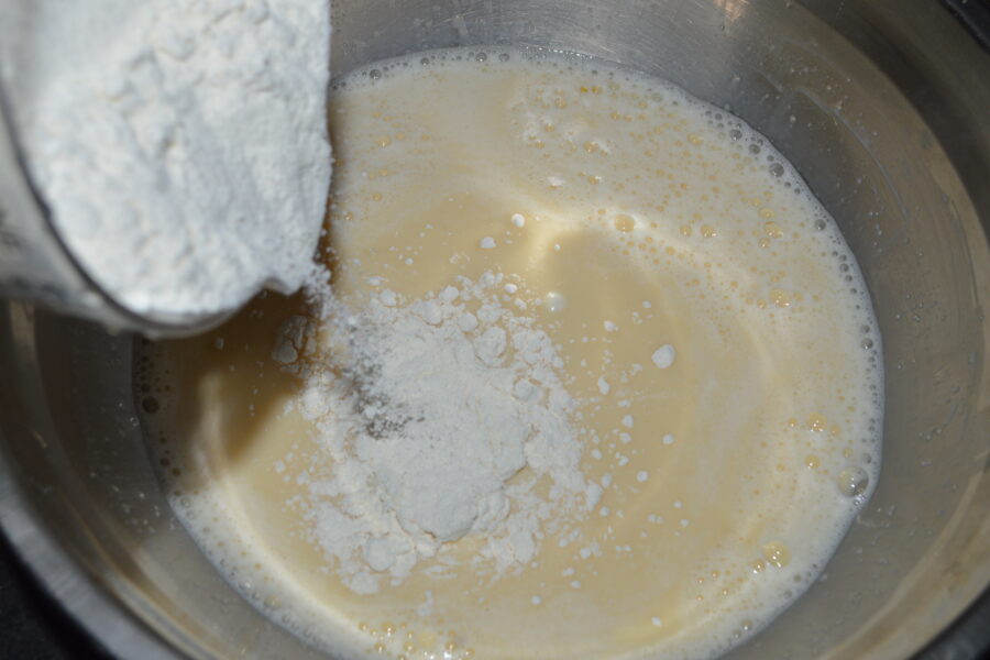 - Turnati faina si amestecati intii cu un tel, apoi framantati aluatul cu mainele.