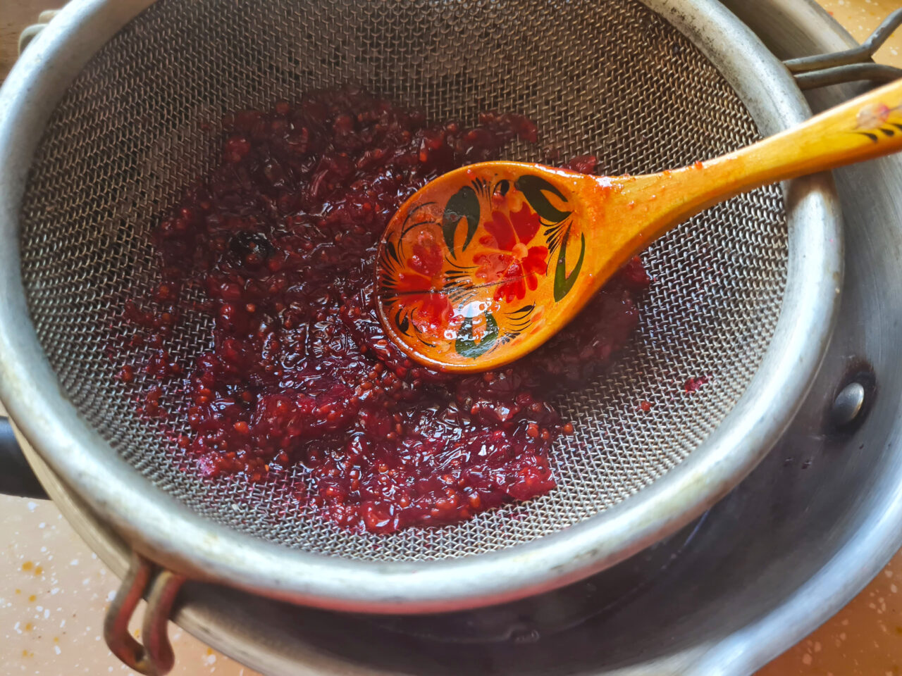 - Dupa aproximativ trei minute de la o bolboroseala puternica, opriti aragazul. Zdrobind cu grija cu o lingura, strecurati preparatul iute printr-o sita.