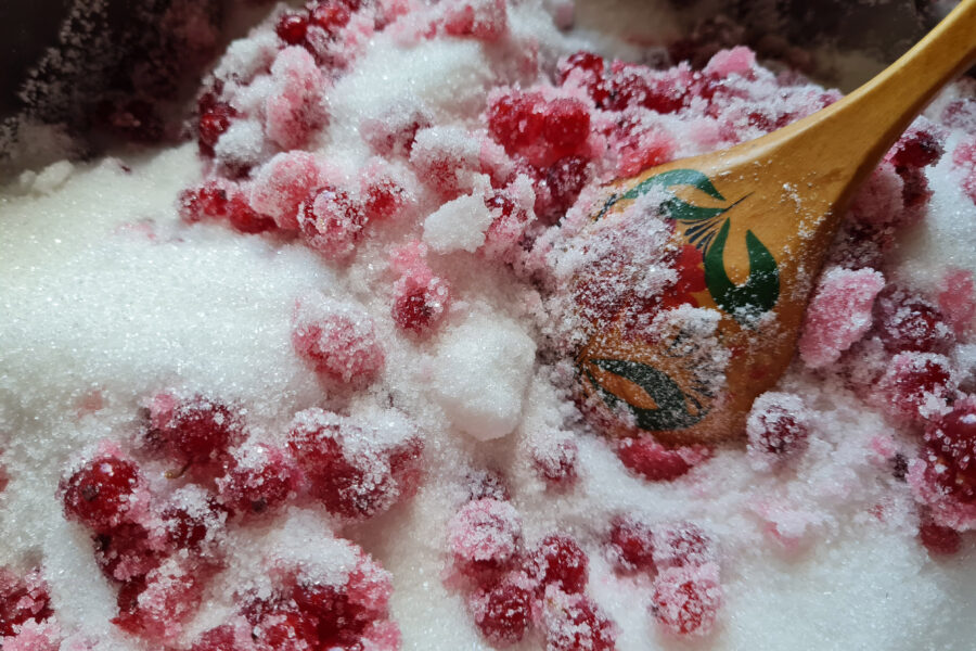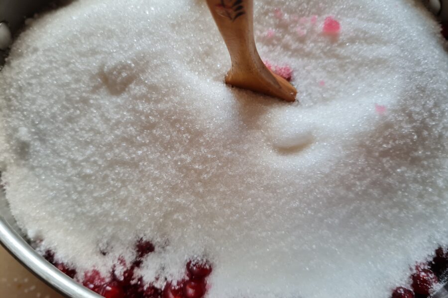- Adaugati zaharul la coacaze.