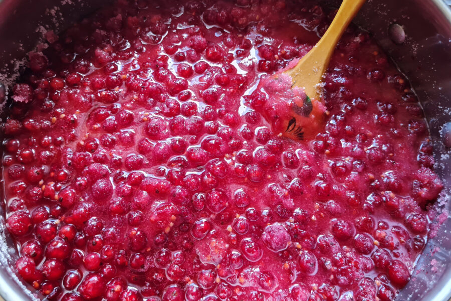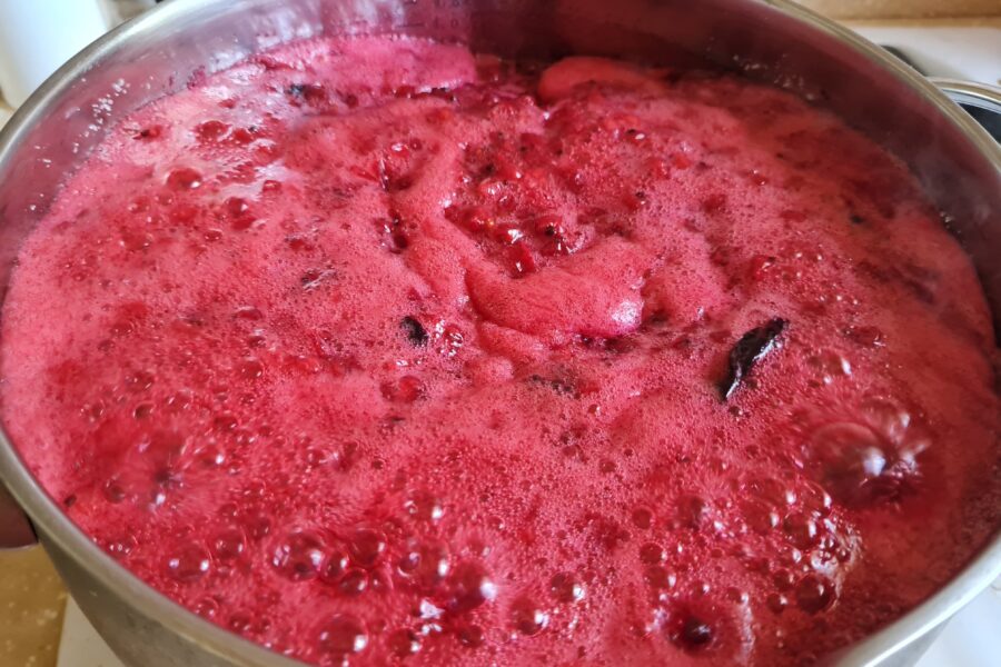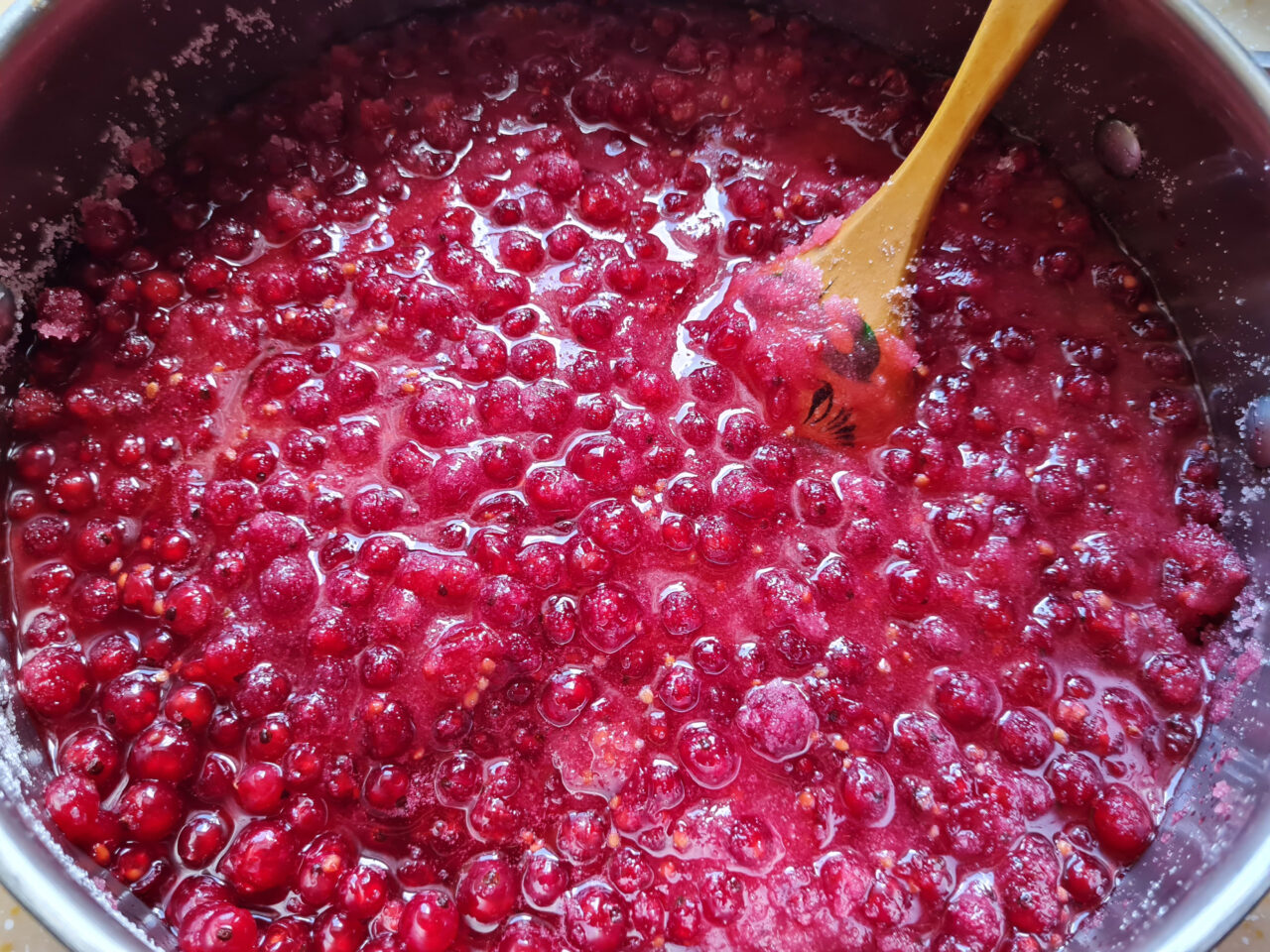 - Puneti coacazele spalate si curatate de pe ramuri intr-o cratita destul de adanca, atunci cand alegeti care dintre ele, luati in considerare faptul ca la un moment dat in timpul gatitului totul va spuma, crescand considerabil in dimensiune.