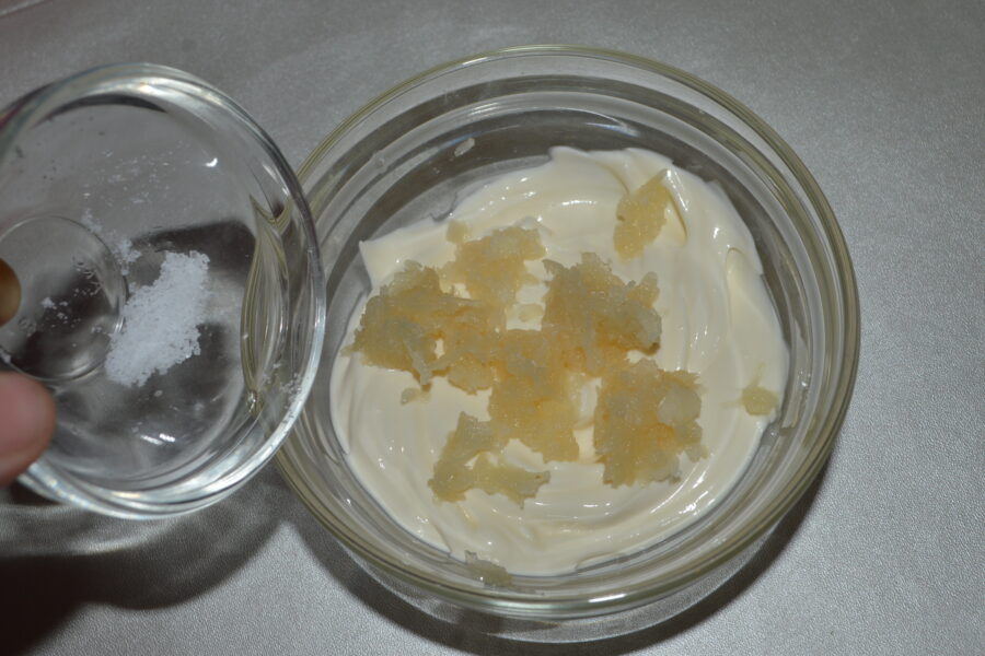 - Presati usturoiul si adaugati-l la maioneza.
