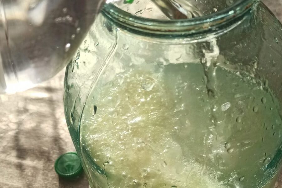 - Apoi, luați un borcan curat de trei litri și turnați zeama de lămâie.