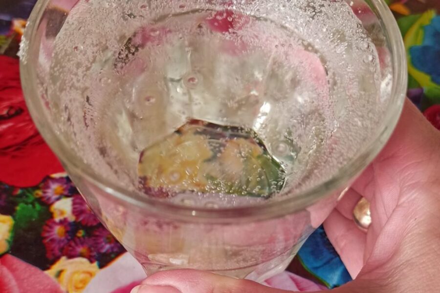 - Acum turnați un pahar cu apă minerală într-o cratiță și încălziți-l ușor pe aragaz.