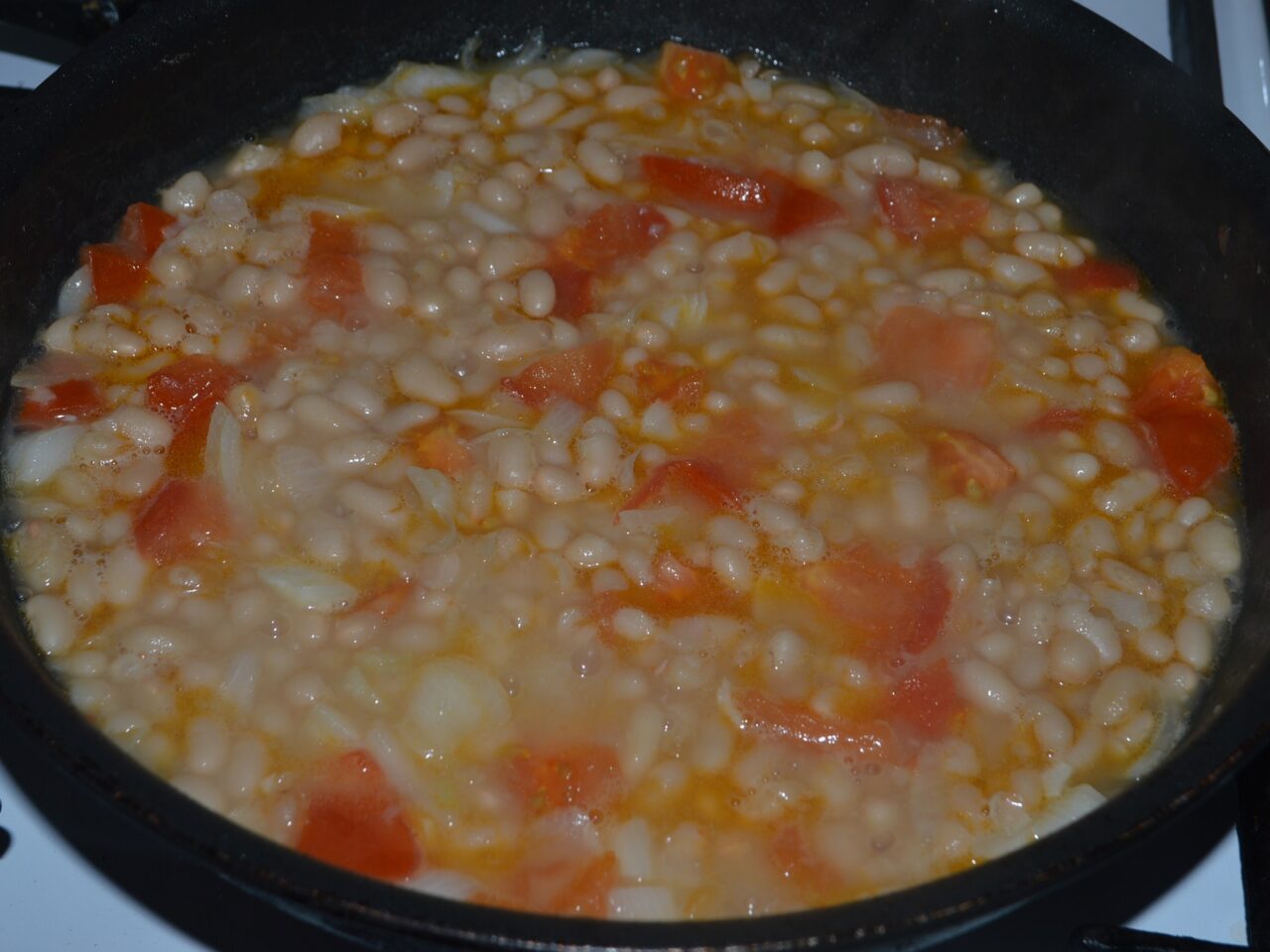 - Adaugati fasolele fierte in tigaie si amestecati putin cu legumele.