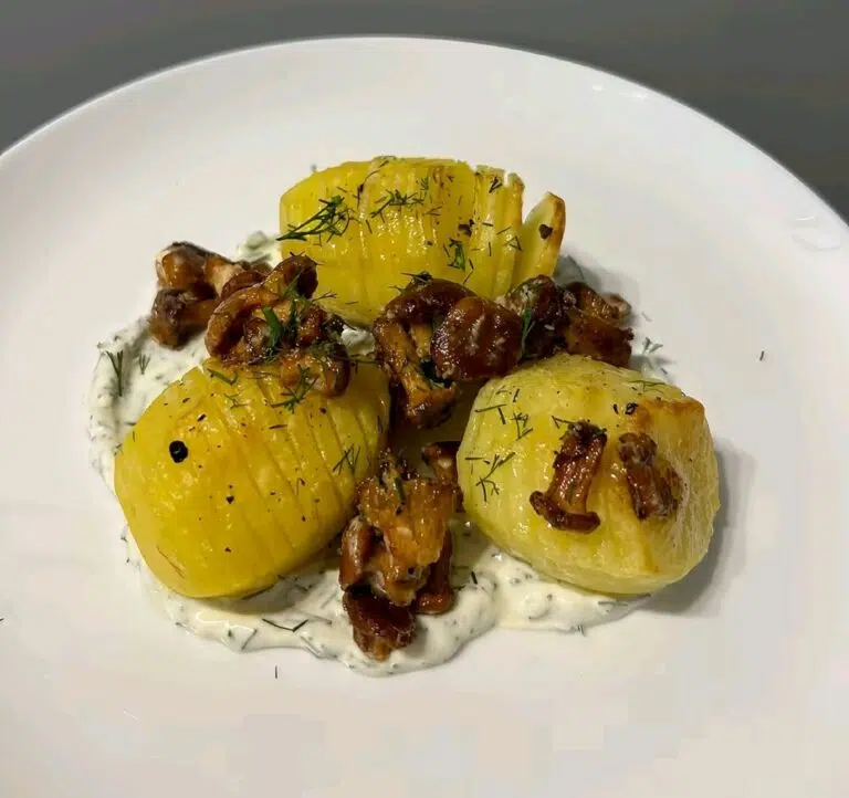 Cartofi cu ciuperci galbiori si sos de smantana
