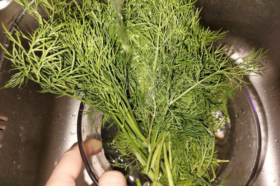 - Pentru inceput, vom avea nevoie de marar proaspat, care trebuie spalat sub jet de apa curenta.