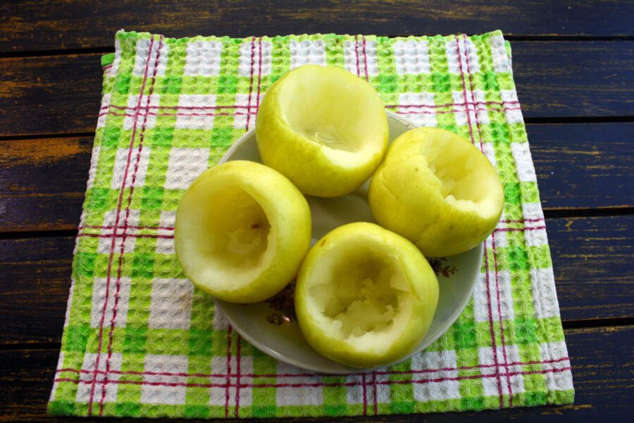 - Scoateți miezul merelor murate cu o lingură.