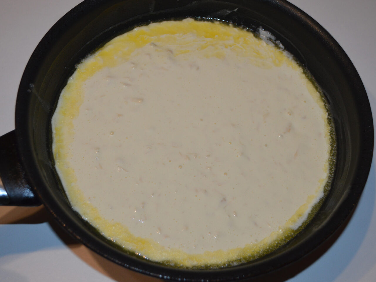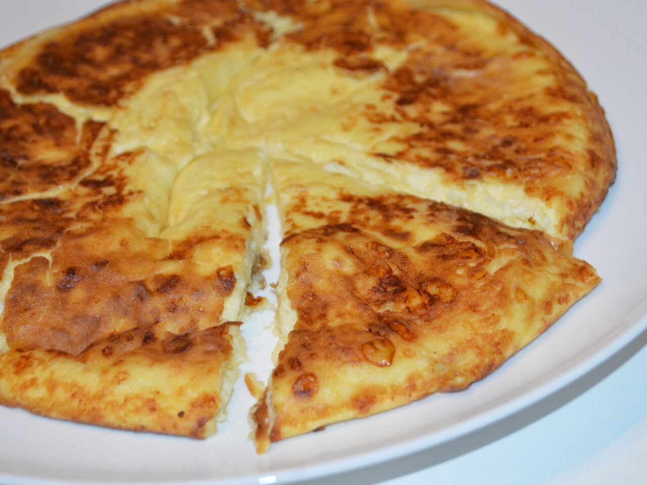 - Turnati compozitia in tigaie si gatiti timp de 5-7 minute pe o parte, apoi o intoarceti atent pe cealalta parte cu ajutorul capacului si gatiti la fel inca 5-7 minute. Gatiti cu capac, la foc mic.