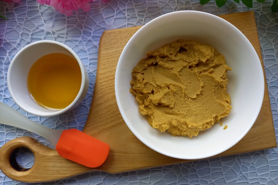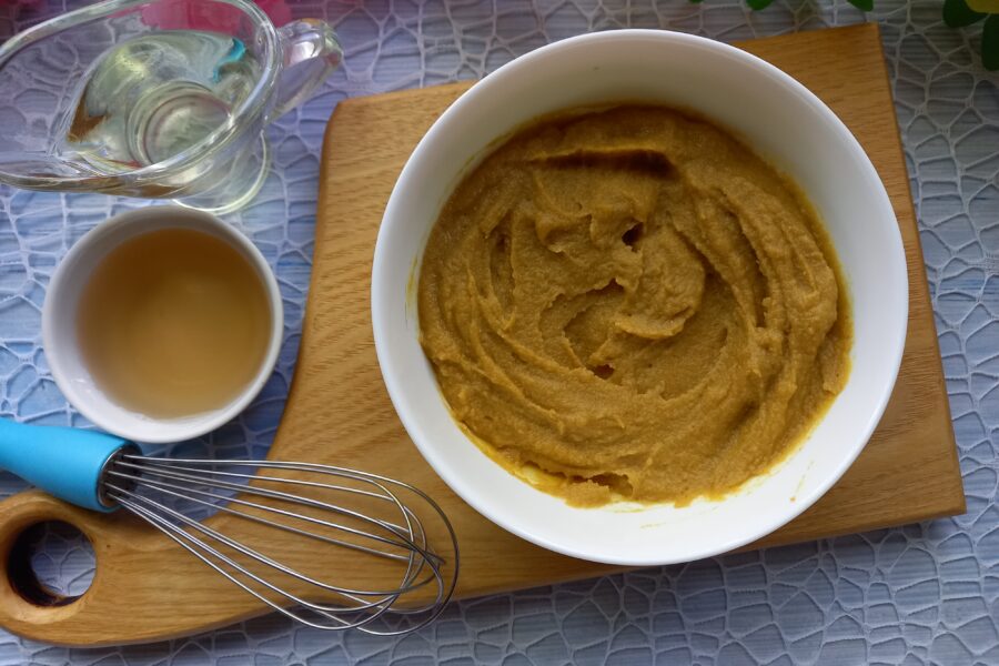 - Turnati apa fierbinte (dar nu clocotita) in castronul cu amestecul de mustar și amestecati bine.
