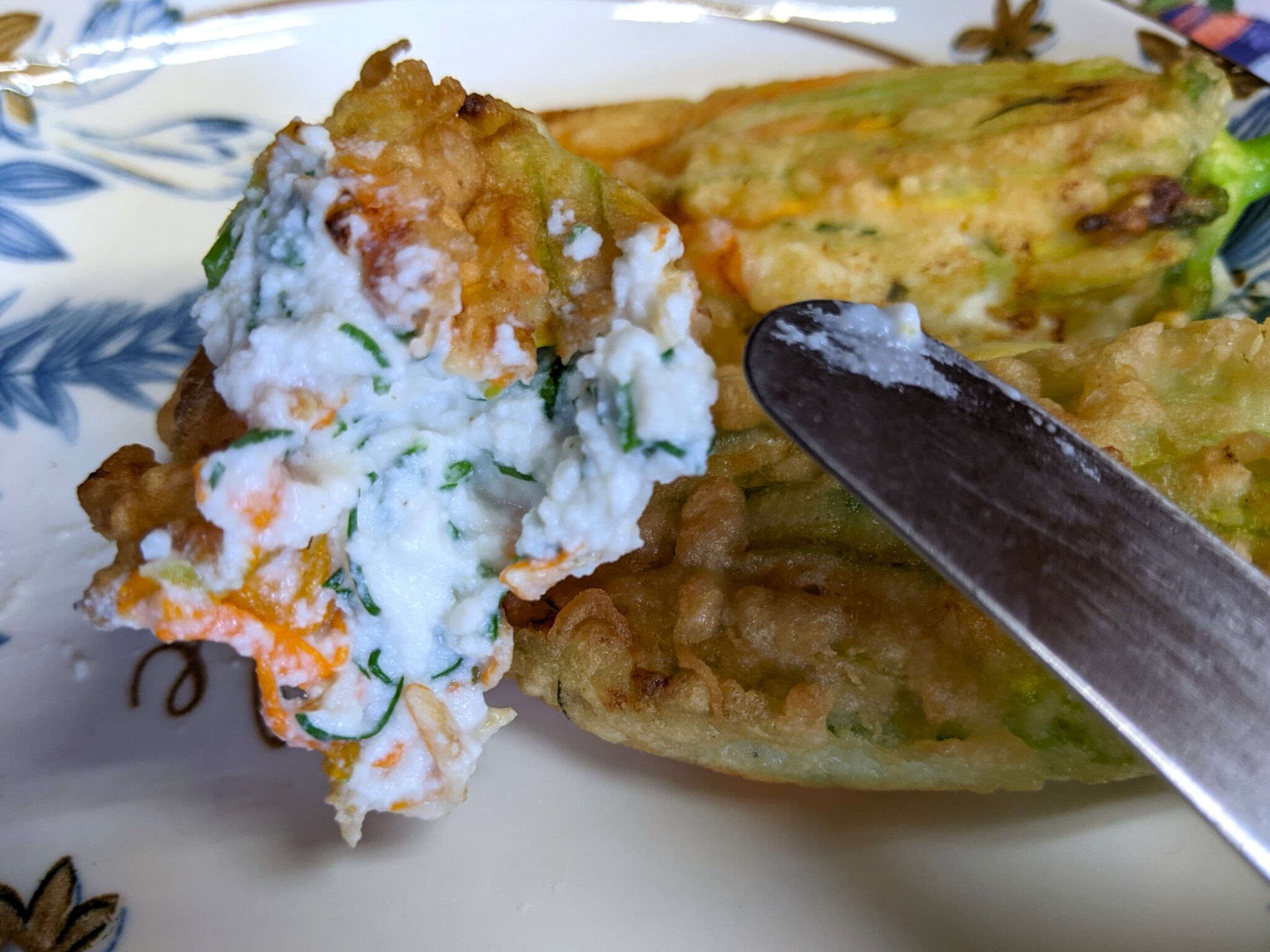 Reteta de flori de dovlecei umplute cu cascaval ricotta, verdeturi si usturoi. Am luat trei flori de dovlecel masculine. Acestea nu au ovar (flori goale) si cresc pe o tulpina …