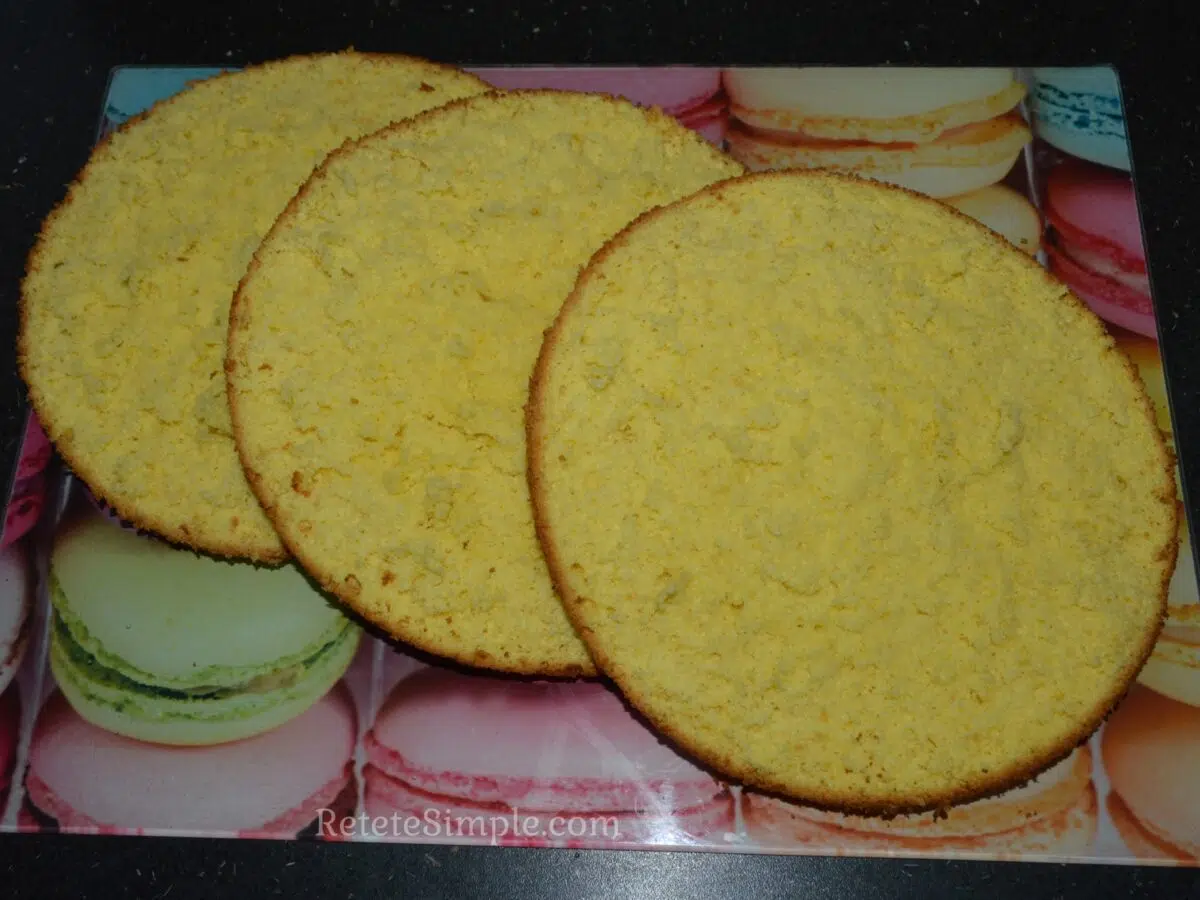 - Puneti aluatul în tava pregătită și coaceti la 190 de grade timp de 25-30 de minute. Scoateți pandișpanul din cuptor și răciți.