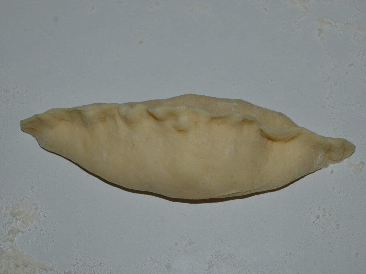 - Pasati cu mainele bila de aluat pentru a face loc umpluturii.