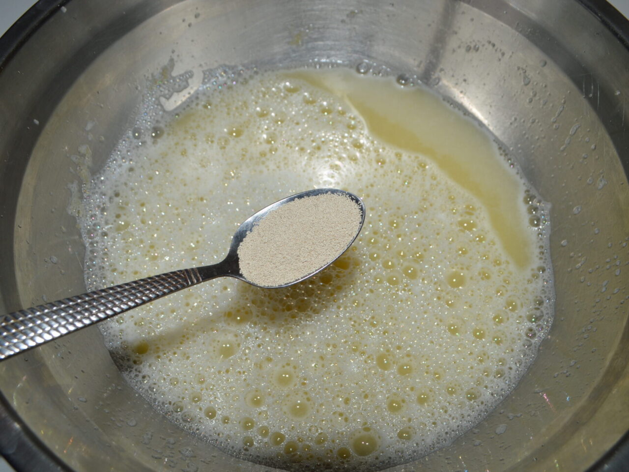 - Adaugati drojdia uscata si lasati acoperit timp de 15 minute.