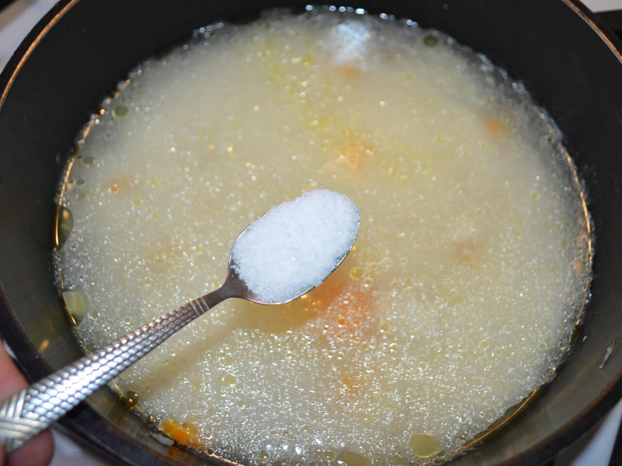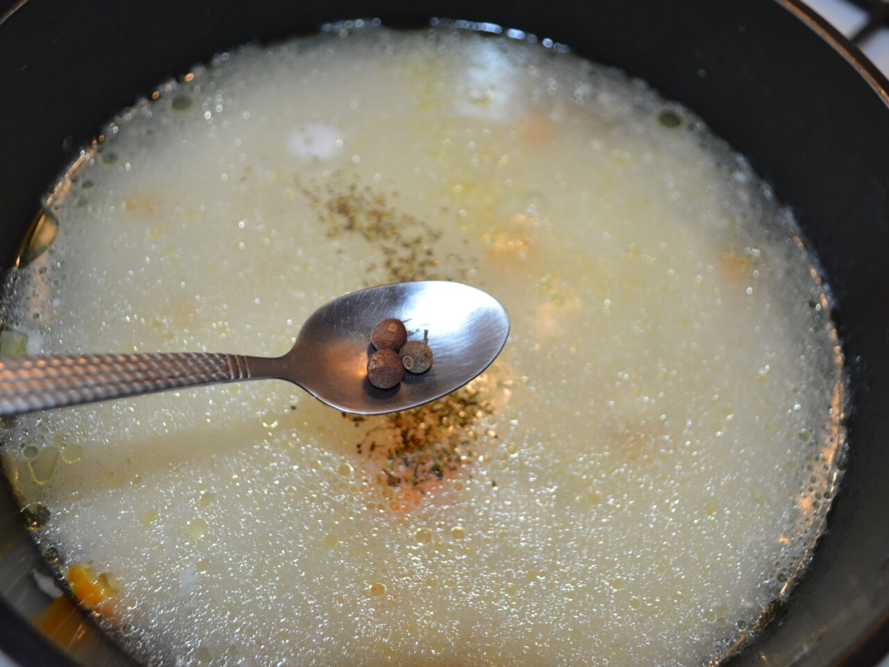 - Adaugati boabele de piper aromate. Gatiti la focul cat mai mic, timp de 20-25 de minute, cu capac.