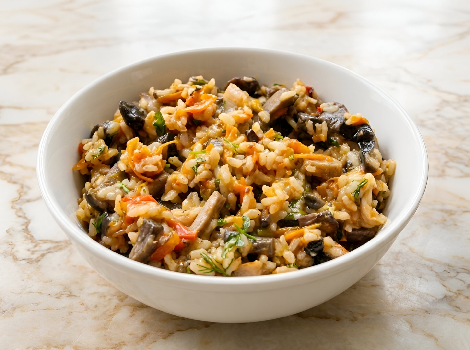 Incluzand mai des pilaf de post cu ciuperci in meniul saptamanal, iti diversifici alimentatia si reduci consumul de carne, fara sa simti ca renunti la mancaruri satioase. Reteta aceasta este bogata in carbohidrati complecsi din orez, iar ciupercile aduc o cantitate utila de proteine vegetale si fibre. In plus, faptul ca se prepara rapid si nu cere supraveghere constanta o recomanda pentru zilele aglomerate, cand totusi vrei sa pui pe masa ceva gatit in casa. Prin mici variatii de condimente si legume, o poti adapta gusturilor familiei, astfel incat sa nu para niciodata o mancare banala. Este un exemplu bun de preparat simplu, dar prietenos cu sanatatea si cu bugetul.