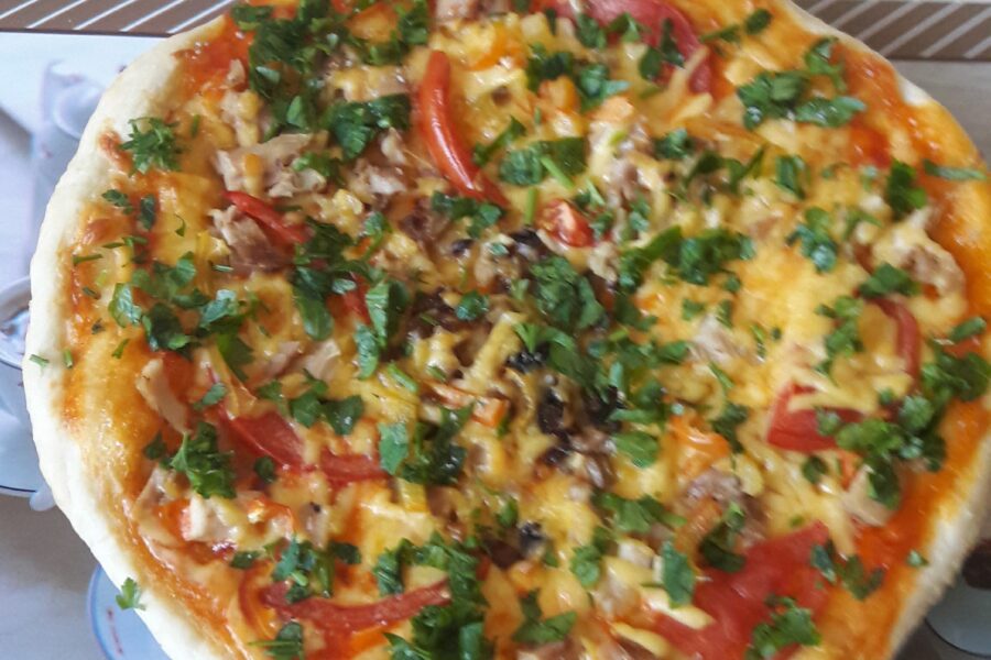 Astăzi voi împărtăși o rețetă pentru pizza de casă cu pui și ciuperci. De asemenea, fac aluatul singură, îmi place mai mult.