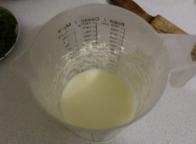 - Bateți ouăle cu maioneză într-un amestec pufos pentru turnare.