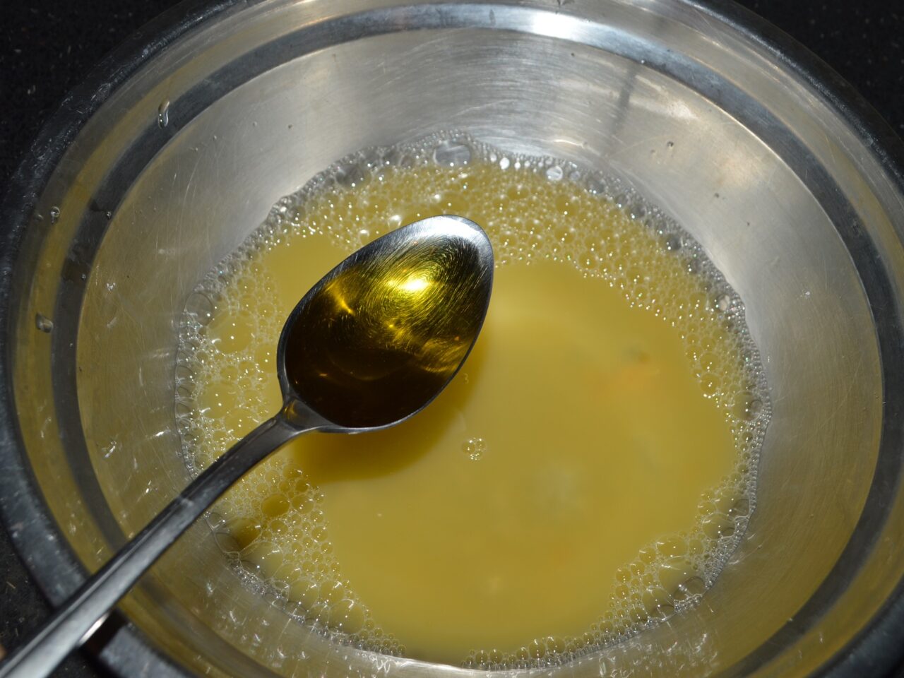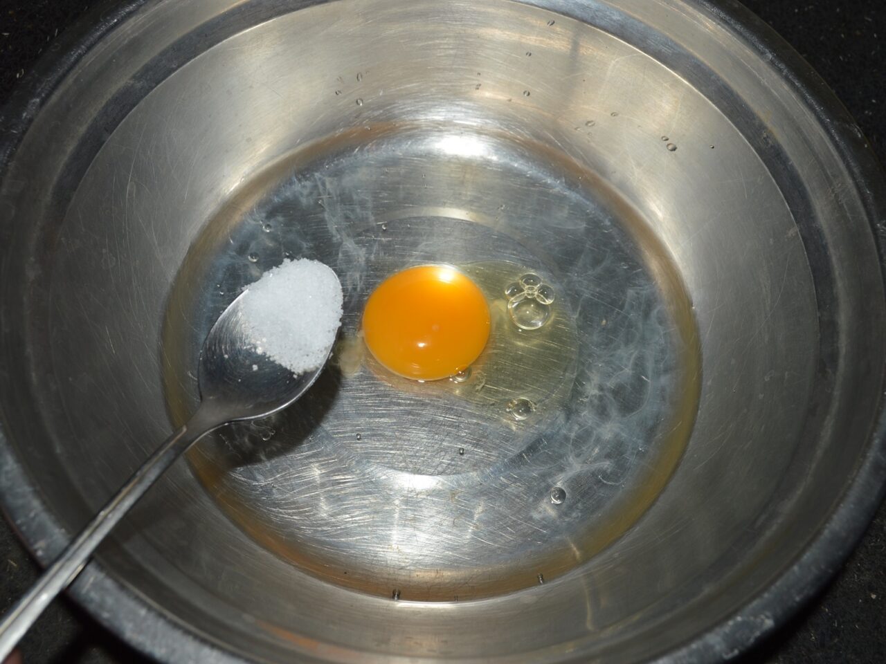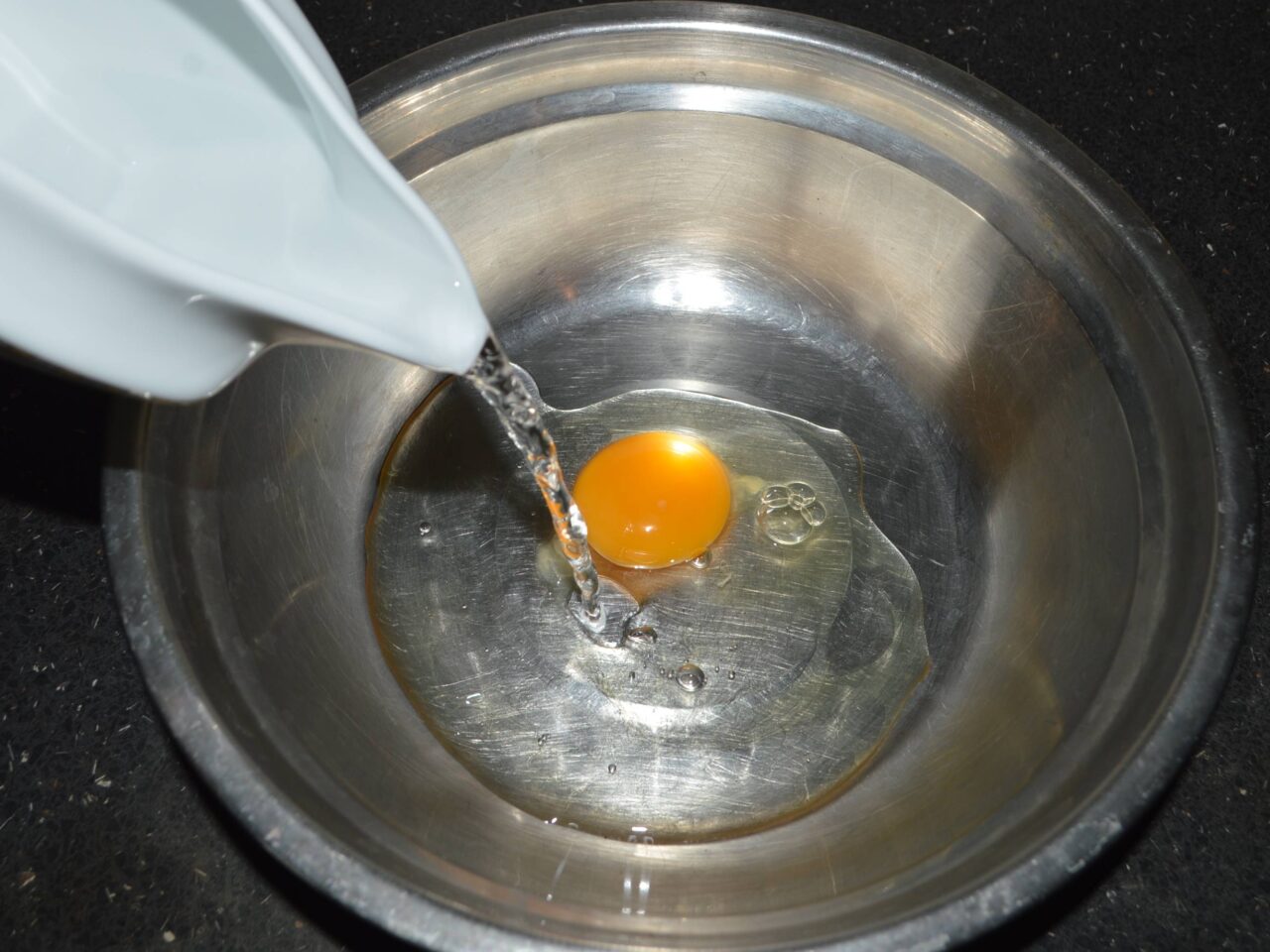 - Intr-un bol spargeti un ou si turnati apa calduta.