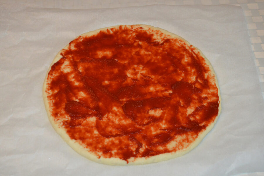 - Ungeti aluatul cu pasta de tomate.