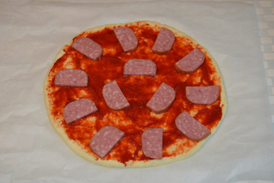 - Aranjati felii de salam taiate.