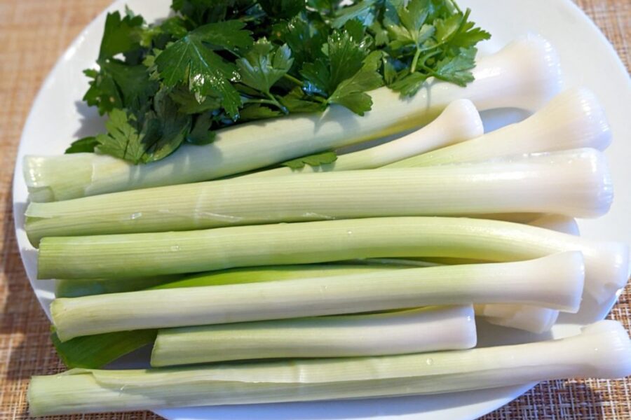 - Curățati prazul, se toacă mărunt și se prăjește, adăugând sare, în ulei vegetal.