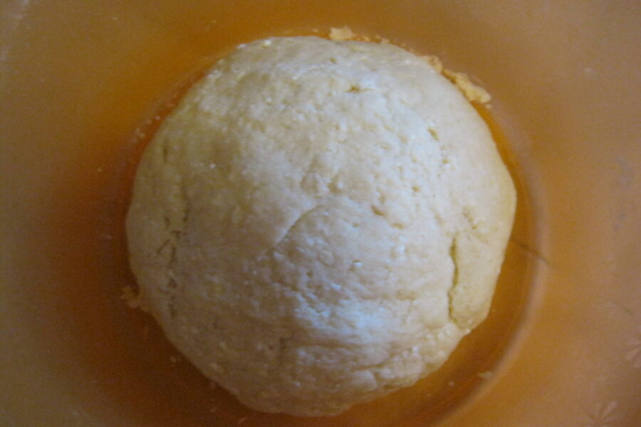 - Se frământă aluatul din drojdie, apă, făină, sare și ulei vegetal. Puneți-l într-un loc cald timp de aproximativ 1 oră.