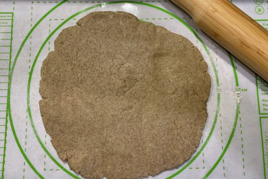 - Se aplatizează aluatul răcit cu ajutorul unui sucitor. Acesta va fi fragil, așa că folosiți două spatule late pentru a-l transfera în formă.
