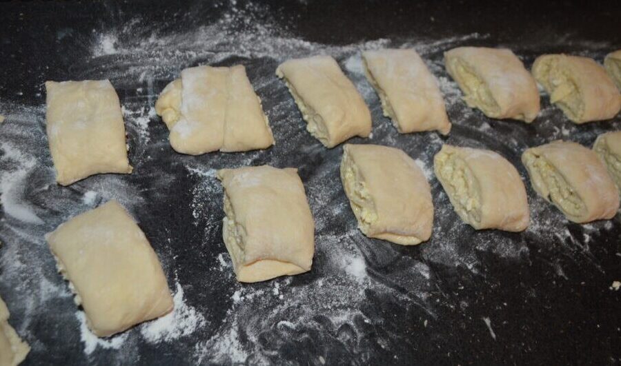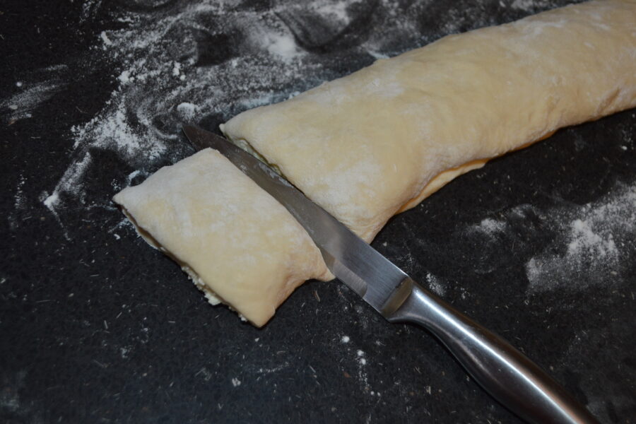 - Taiati cu cutitul din rulada formata, pentru a face mai multe placinte.