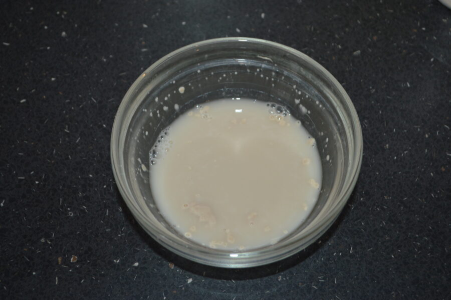 - Amestecati drojdia cu putina apa calduta, si cu o lingurita de zahar. Acoperiti si lasati timp de 5-7 minute pentru a reactiona.