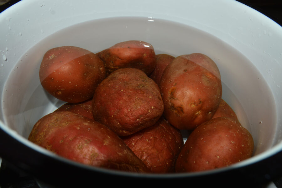- Turnati apa intr-o cratita, si puneti cartofii la fiert.