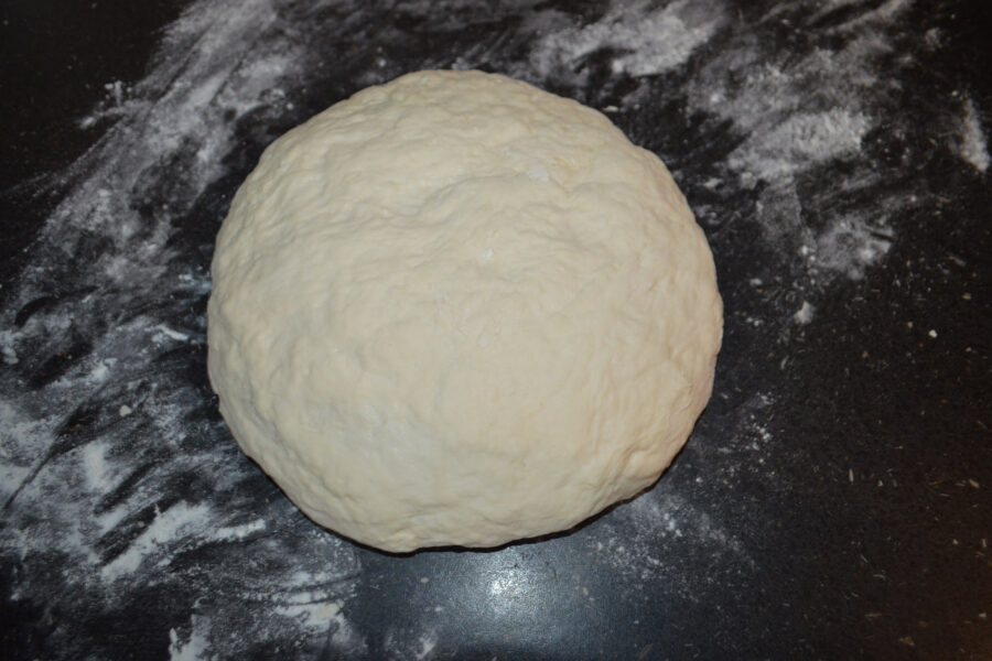 - Aluatul trebuie sa se lipeasca putin de maini, nu puneti faina in exces. Lasati aluatul sa se odihneasca timp de 10 minute.
