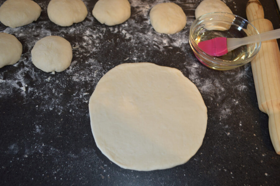 - Intindeti bilele cu un sucitor, si ungeti-le cu ulei.