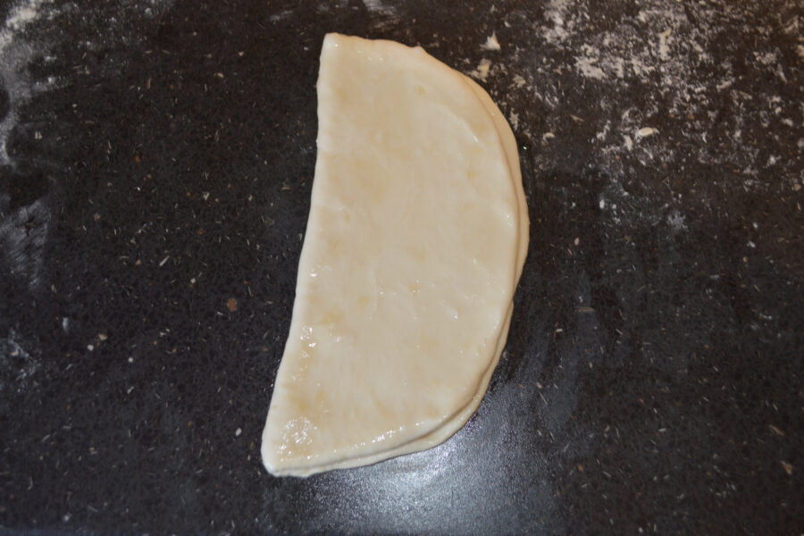 - Indoiti inca odata, ca sa obtineti forma unui triunghi. Ungeti iarasi cu ulei.