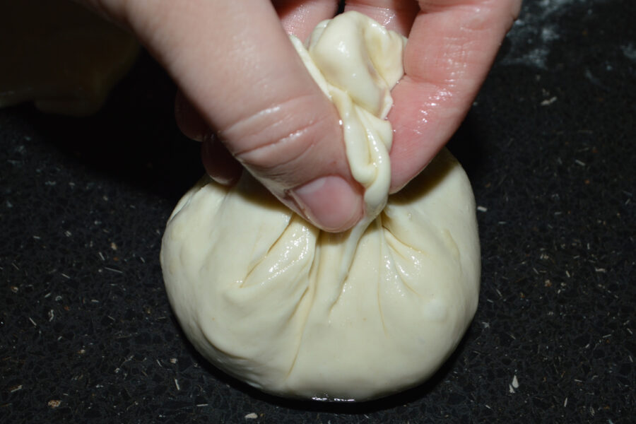 - Dupa ce aluatul s-a odihnit, formati 12 bile de aluat. Lasati pe inca 10 minute.