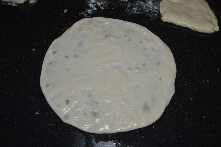 - Presati aluatul pana se va face de aproximativ 24 de cm diametru.