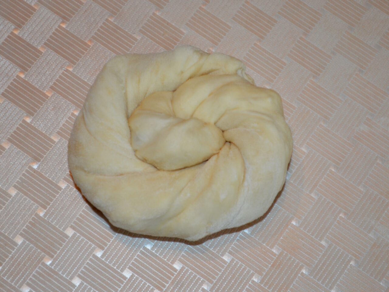 - Invartiti aluatul in asa mod ca sa formati o placinta.
