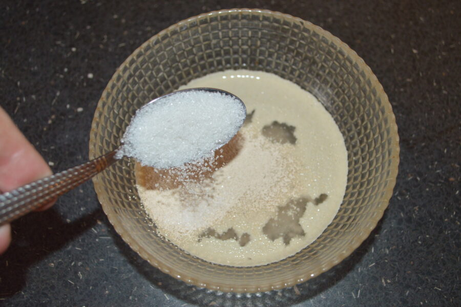 - Se adauga 1 lingurita de zahar, si se acopera cu o farfurie pentru aproximativ 5 minute, pina cind se ridica putina spuma.