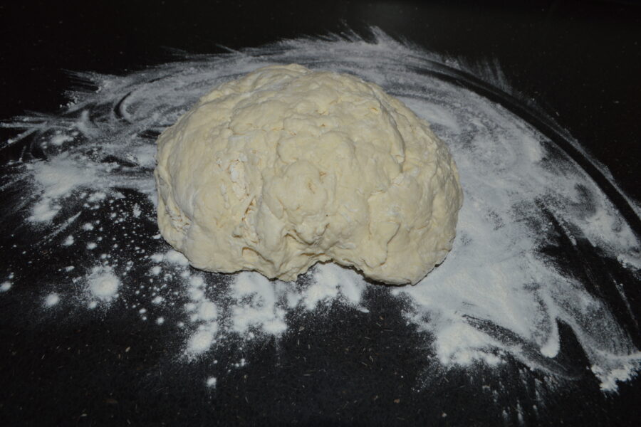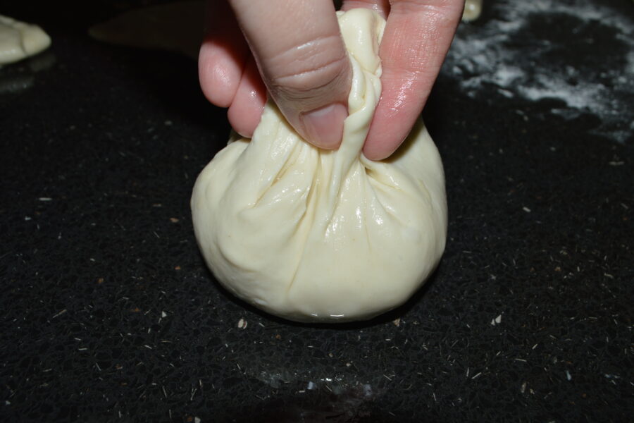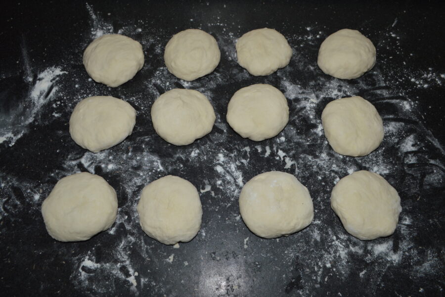 - Dupa cele 10 minute in care aluatul sa odihnit, presurati putina faina si formati 12 bile de aluat, si le lasati pe inca 10 minute.