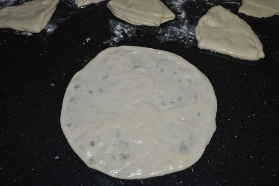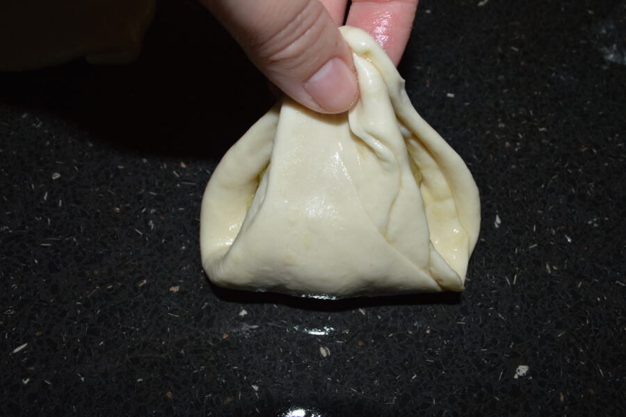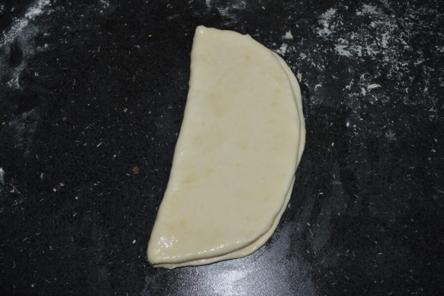 - Indoiti inca odata, ca sa se primeasca un triunghi, si ungeti cu ulei.