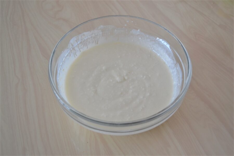 - Combinați branza de vaci cu chefirul într-un castron mare, amestecați bine cu un tel.