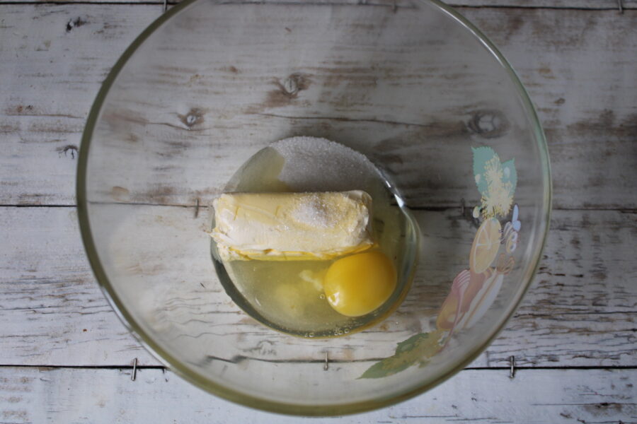 - Untul moale (nu este nevoie sa-l topiti special, este suficient sa-l lasati la temperatura camerei) se amesteca cu zaharul si oul.